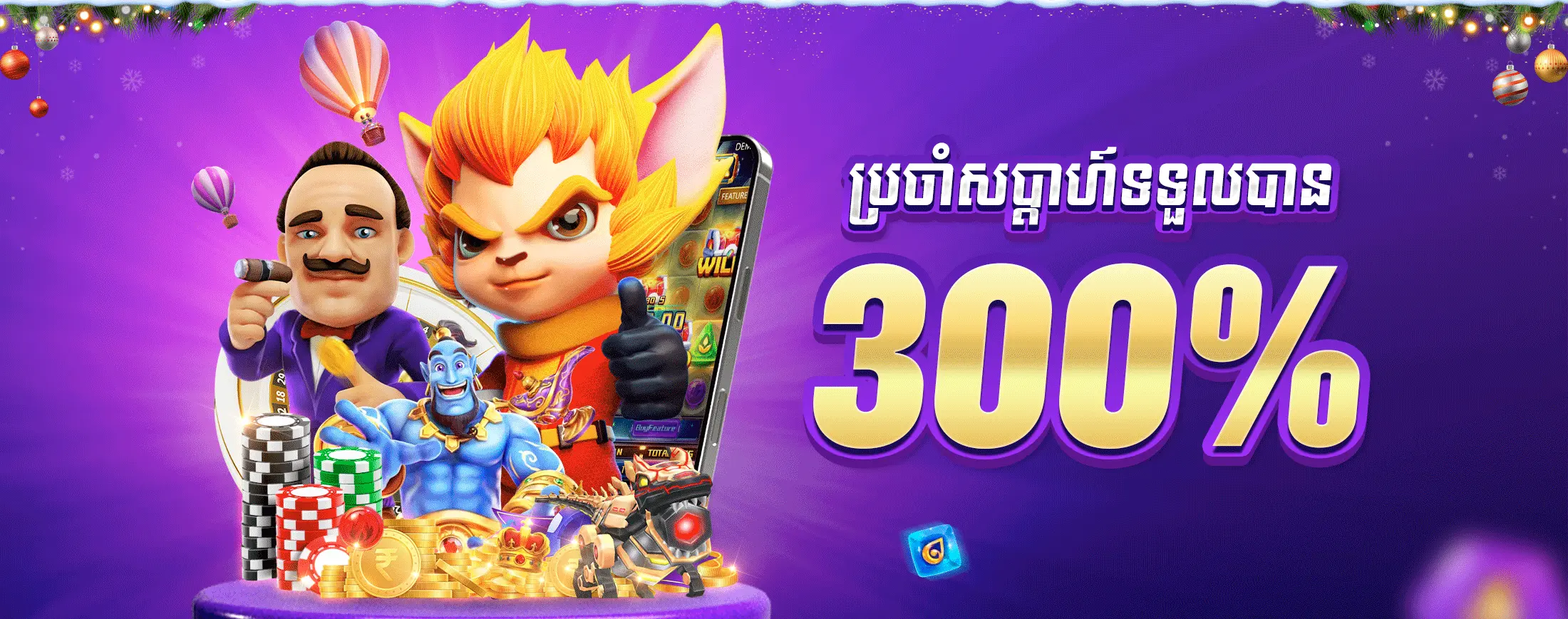 🎁 ទទួលបាន ៣០០% ប្រចាំសប្តាហ៍ 🎁